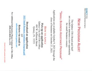 QUINCY, FL. July 12, 2024- The Quincy Community Redevelopment Agency (CRA) has awarded grants to thirteen businesses located in the Quincy CRA district a total of $72,000 under the Small Business Assistance Grant program.